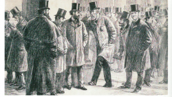 ‘A Scene on ‘Change’. Carl Meyer is the diminutive figure looking down with the 1st Lord Rothschild with his back to the pillar on the left and his son Walter to the right The Graphic 9 May 1891