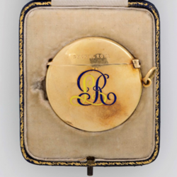 Sorting through my parents’ effects after my mother’s death in January 2006, I found a small gold vesta personalized with a cypher formed of the letters CM inset with diamonds beneath the inscription ‘KIMBERLEY’ and above the date ‘1907’. On the reverse is the cypher LR enamelled in blue and yellow beneath the inscription ‘SHORTGROVE’. This was preserved in its original leather box with the name of the retailer ‘Catchpole and Williams, Oxford Street’, printed on the upper silk lining.