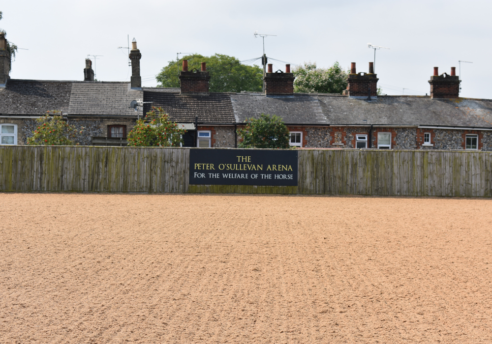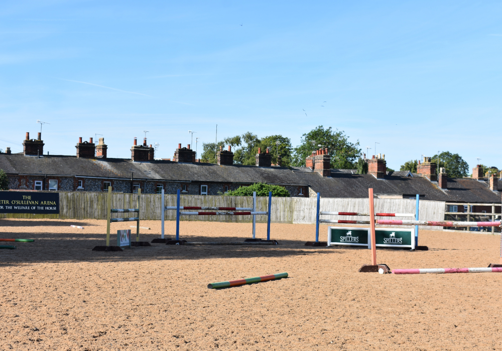 The Peter O’Sullevan Arena is a 70 x 35m British Showjumping Approved Venue arena, in the grounds of the National Horseracing Museum. The surface is Andrews Bowen GB mix, a fully wax coated surface most suitable for jumping and dressage disciplines, but can easily be prepared for all arena disciplines.